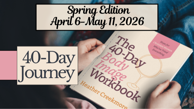 "Heather Creekmore makes me smile, and then, she makes me think. Her 40-Day Body Image Workbook is not just another tool that dangles the carrot of freedom from body shame in front of you but fails to make a lasting difference. It’s a journey toward a deeper understanding of your design and your Designer. Over and over again, Heather will remind you that your ultimate goal is not a better view of yourself, but a clearer view of the God who made you. Heather will make you smile and then, she will make you think. She will be your biggest cheerleader as you move from frustration to freedom."